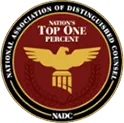 The mission of The National Association of Distinguished Counsel is to objectively recognize attorneys who elevate the standards of the Bar and provide a benchmark for other lawyers to emulate. Members are thoroughly vetted by a research team, selected by a blue-ribbon panel of attorneys and approved by a judicial review board as exhibiting excellence in the practice of law. Only the top one percent of attorneys in the United States are awarded membership in NADC.
